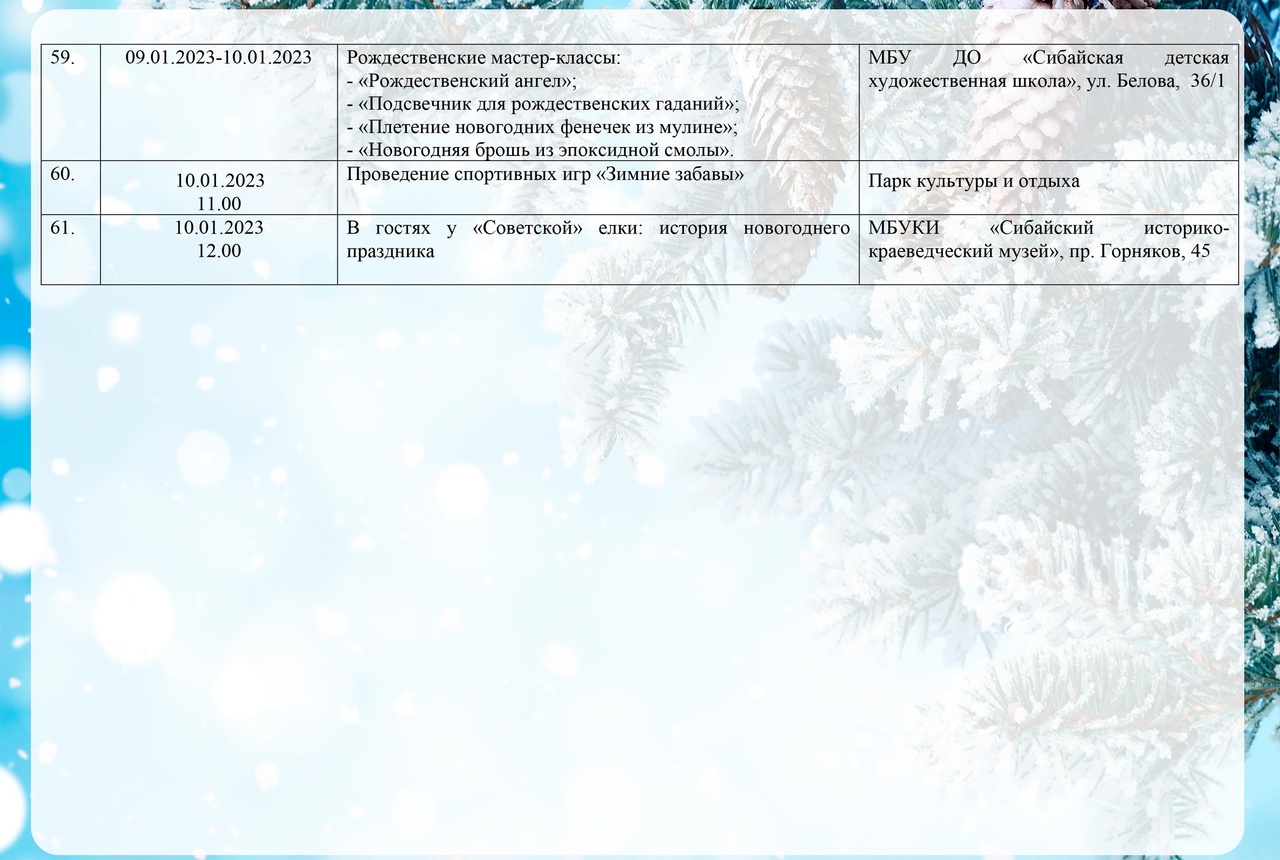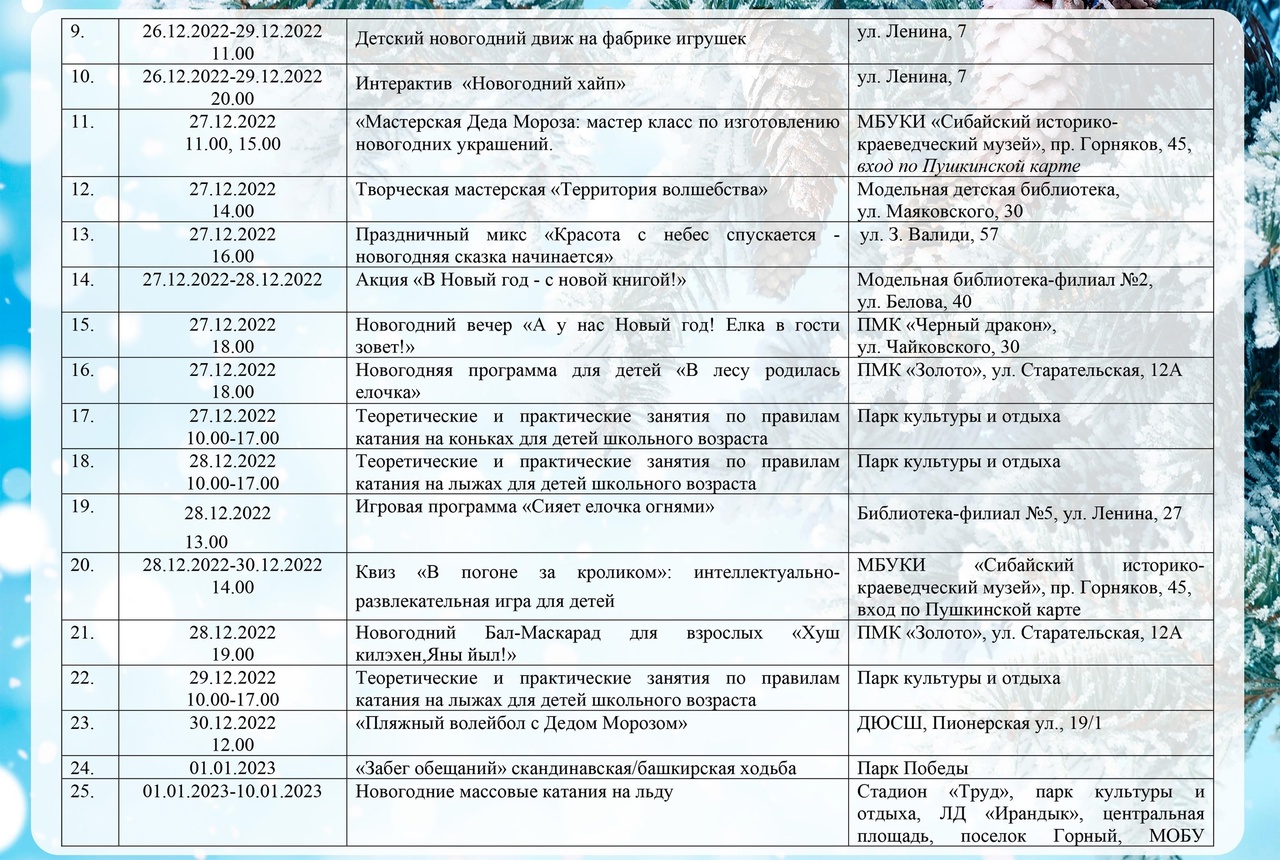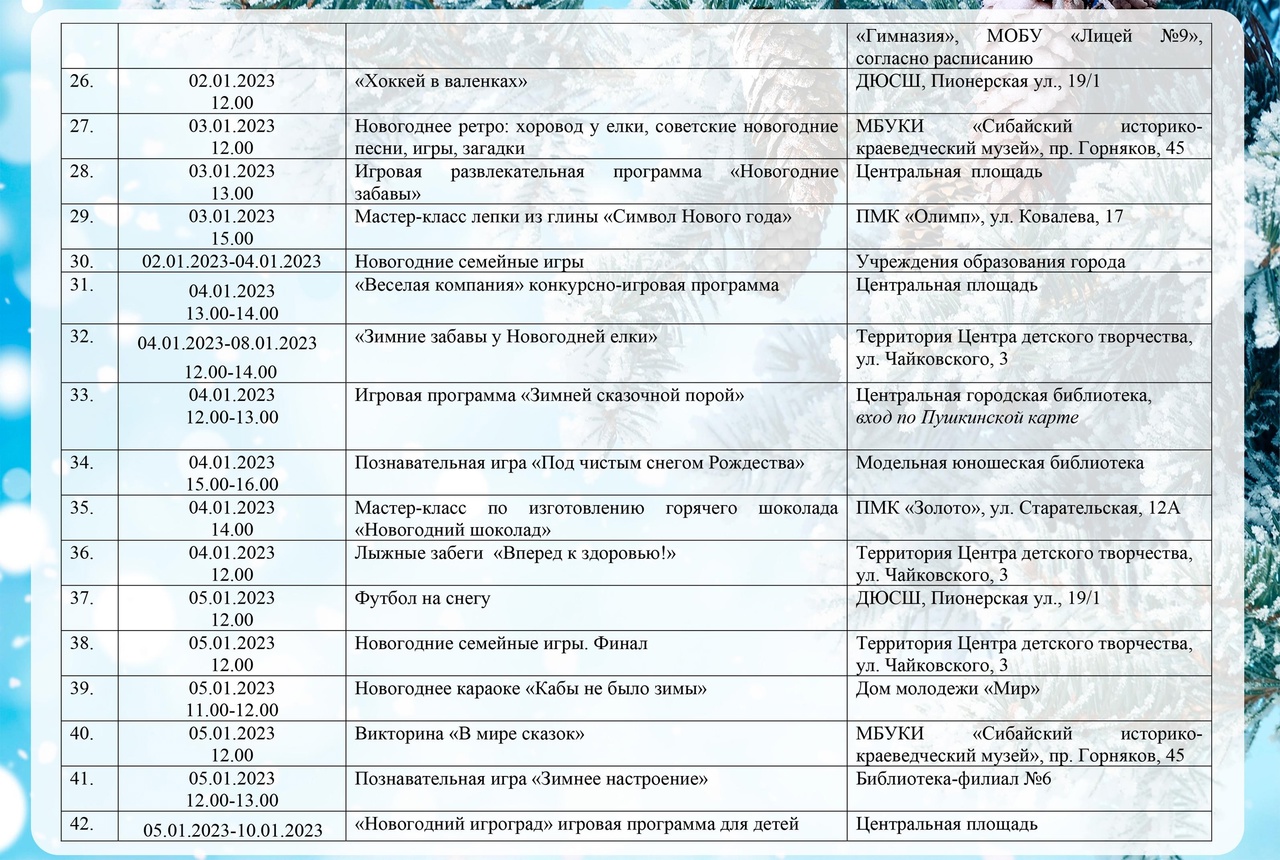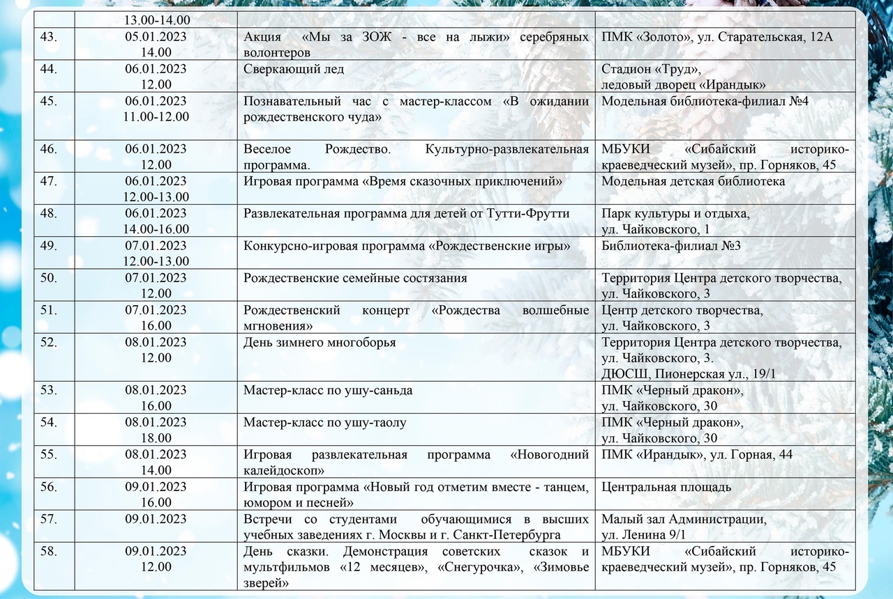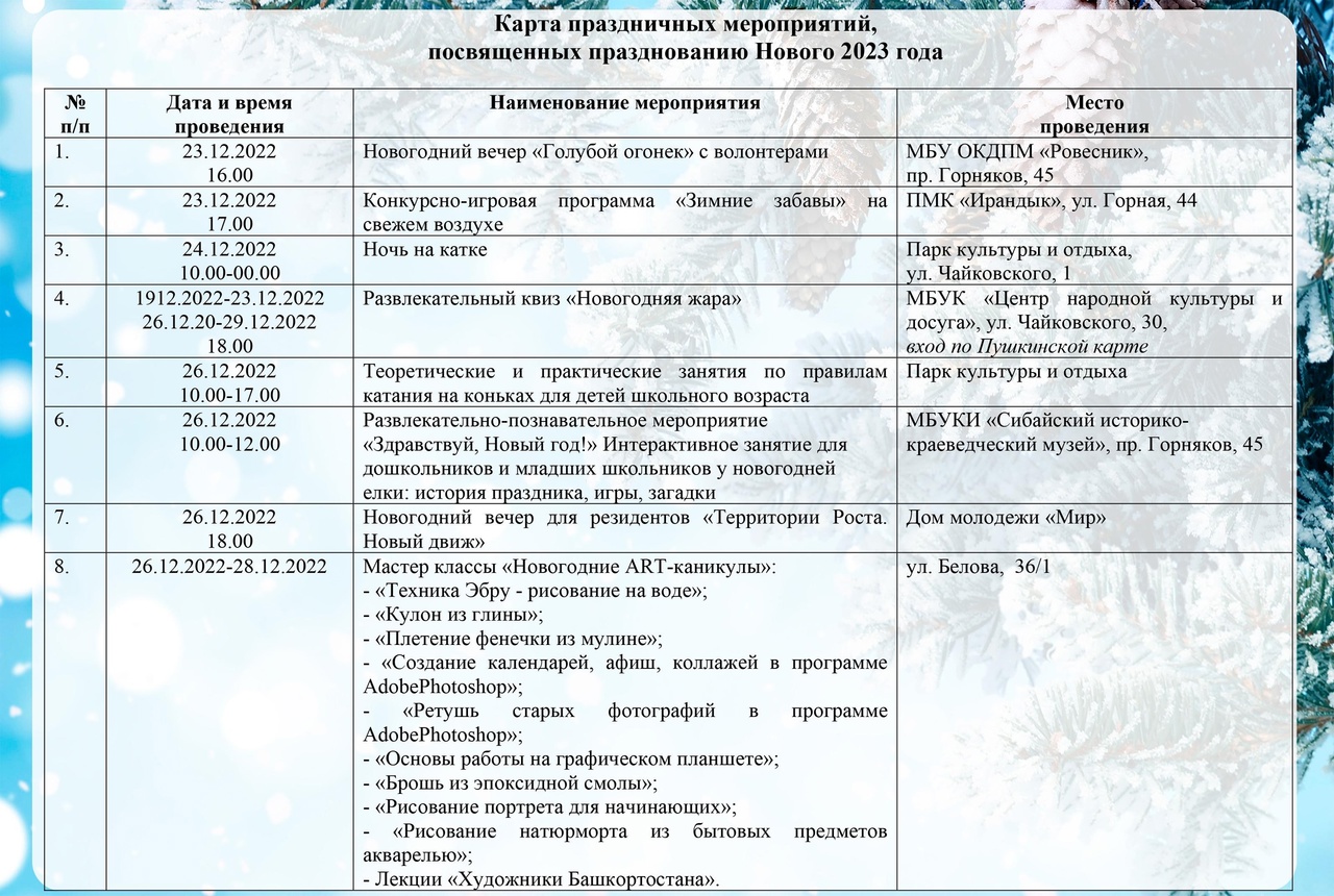 КАРТА ПРАЗДНИЧНЫХ МЕРОПРИЯТИЙ, ПОСВЯЩЕННЫХ ПРАЗДНОВАНИЮ НОВОГО 2023 ГОДА