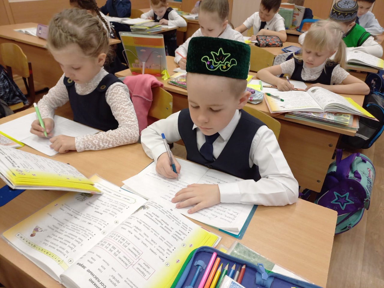 На уроках учащиеся читали стихи, играли национальные игры, слушали песни и рисовали народные костюмы.