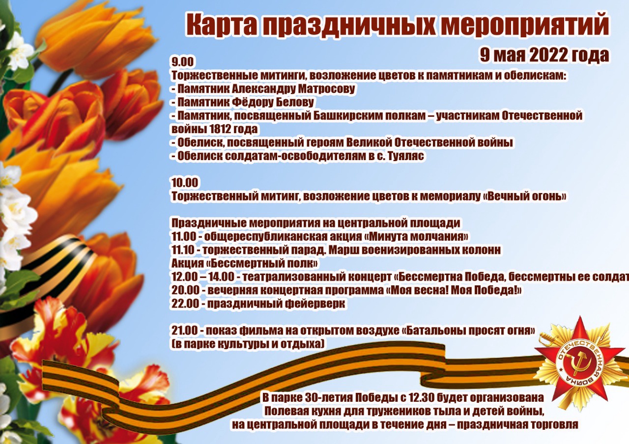 КАРТА ПРАЗДНИЧНЫХ МЕРОПРИЯТИЙ 9 МАЯ 2022 ГОДА В НАШЕМ ГОРОДЕ