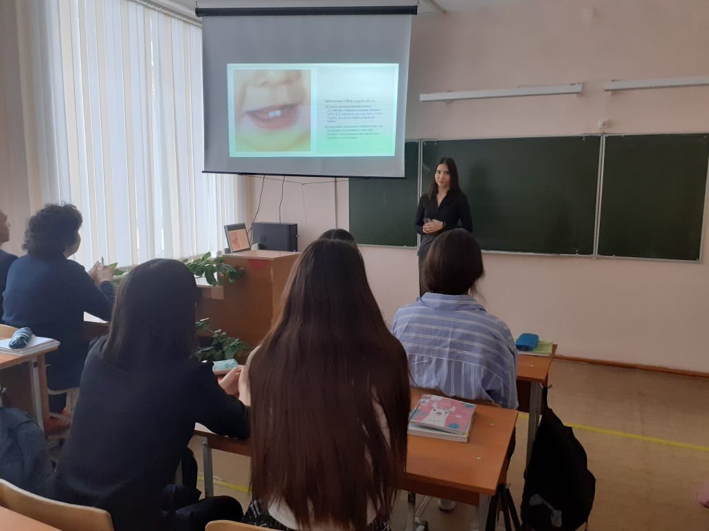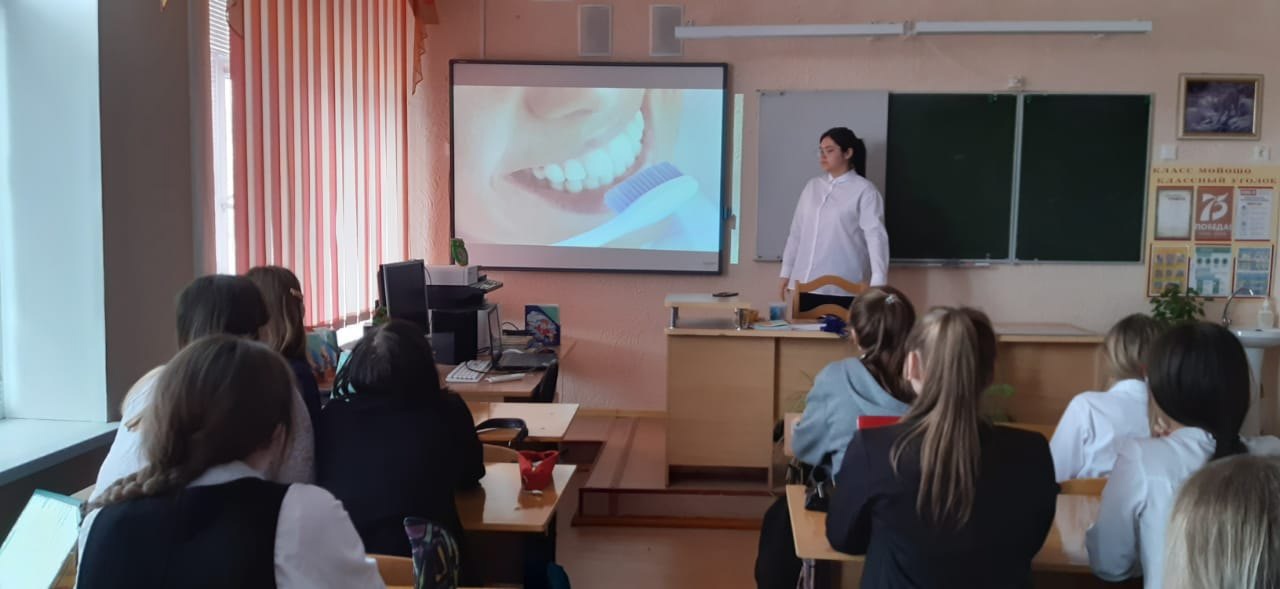 Проведены уроки гигиены, классные часы, беседы с учащимися по профилактике кариеса и обучению правильной гигиене полости рта. Учащиеся приняли участие в онлайн -анкетировании и стоматологическом челлендже, создав свои постеры с посланием "Я горжусь красотой своей улыбки".