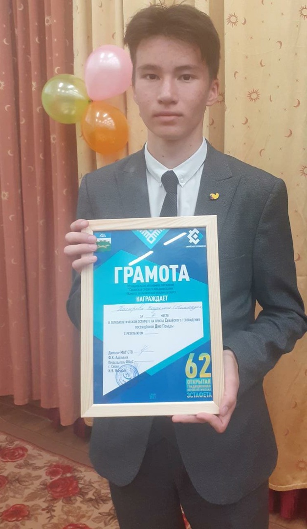 12 мая гимназисты приняли участие в 62-ой легкоатлетической эстафете, посвящённой Дню Победы, на призы Сибайского телевидения. Команда гимназии заняла III место! В личном первенстве ученик 10б класса Насыров Вадим завоевал III место. Поздравляем!