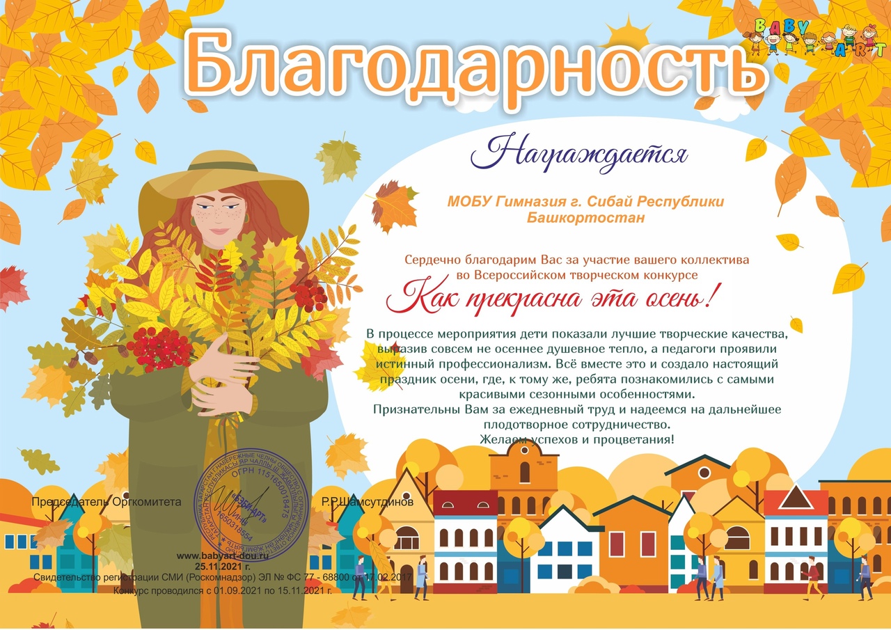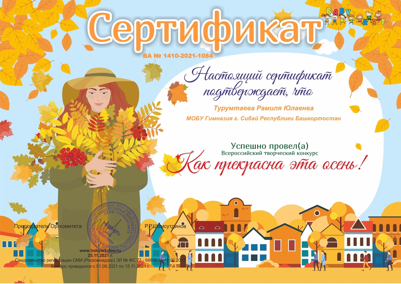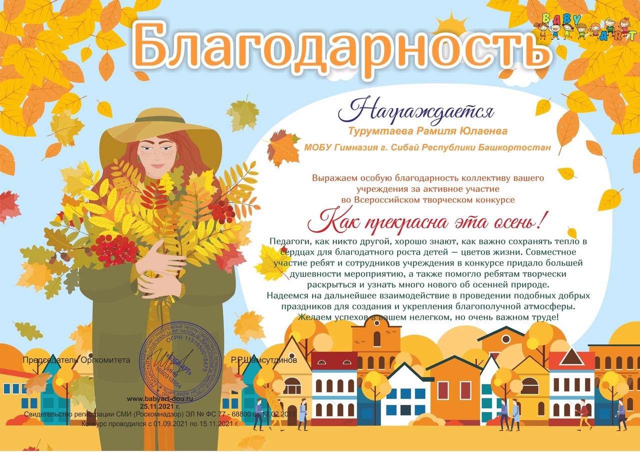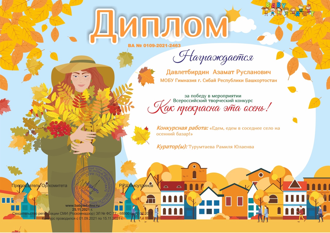 Поздравляем обучающегося 2б класса Давлетбирдина Азамата, завоевавшего диплом во Всероссийском творческом конкурсе "Как прекрасна эта осень!" (руководитель Турумтаева Р.Ю.)
