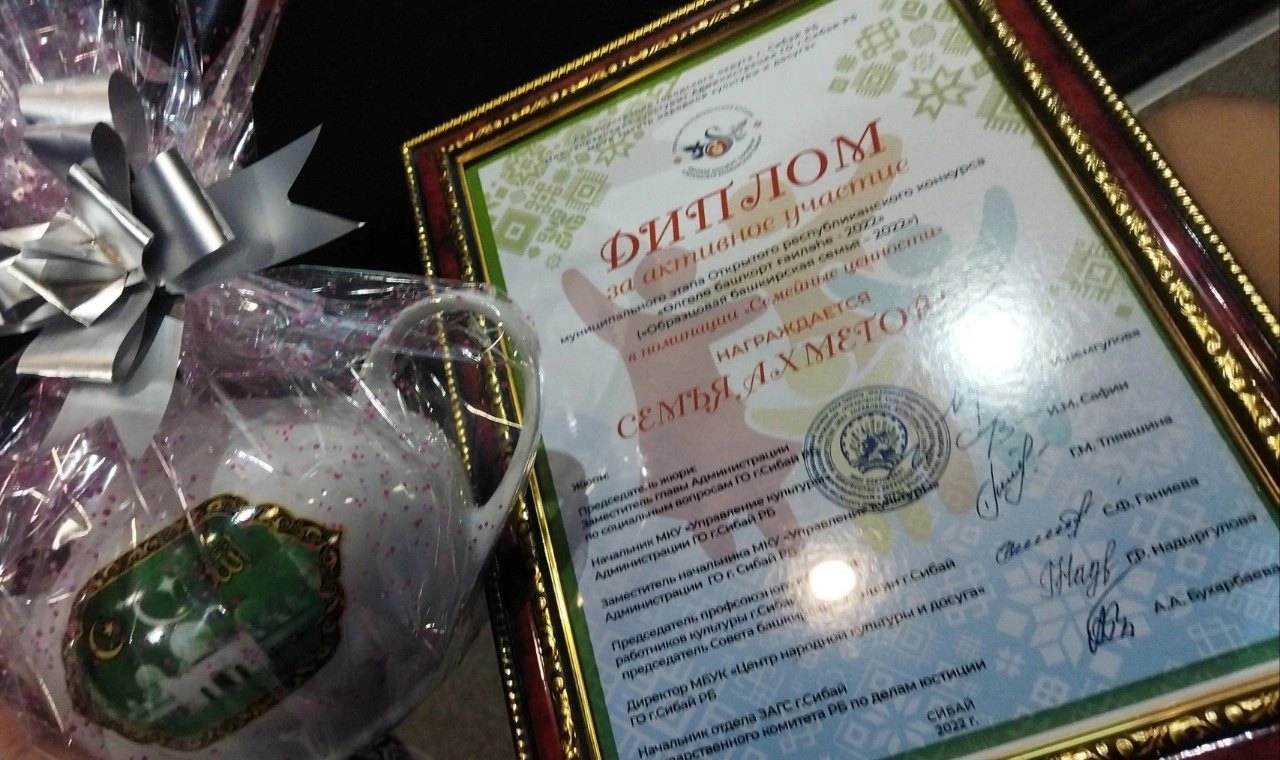 ПОЗДРАВЛЯЕМ СЕМЬЮ АХМЕТОВЫХ (4В КЛАСС), ПРИНЯВШУЮ АКТИВНОЕ УЧАСТИЕ В РЕСПУБЛИКАНСКОМ КОНКУРСЕ "ОБРАЗЦОВАЯ БАШКИРСКАЯ СЕМЬЯ" И ЗАВОЕВАВШУЮ ДИПЛОМ В НОМИНАЦИИ "СЕМЕЙНЫЕ ЦЕННОСТИ"